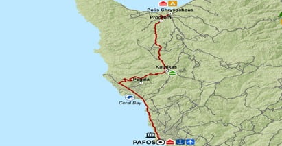 המסלול מתחיל בנמל Pafos, ופונה לכיוון דרום-מזרח, כשהוא מתמשך לאורך החוף.