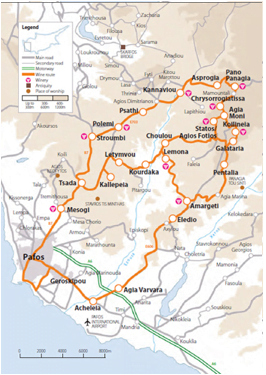אזור זה יפה ושובה לב עם קווי חוף סלעיים, כפרי נוף מדהימים ושלווים, כפרים קטנים ומקסימים בעלי תרבות ומסורת רבת שנים, גפנים פורחות המשתלבים בעדינות עם אלמנטים עכשוויים. בטיול בכפרים מקסימים אלו ניתן לראות את הכרמים הפורחים – כפרים כמו פאנו ארודס (Ineia) אניה , (Pano Aroads) וקטיקס (Kathikas) השוכנים לחופי הצד המערבי של האי.